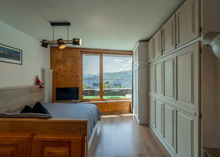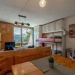 客室から山風景を望めます. このアパ-トは1室のベッドル-ムへ顧客を招待します. このアパ-トはビデ,個別のトイレ とバスタブのあるバスル-ムの1室を有しています.